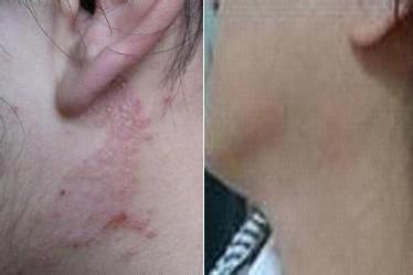 治疗:半个月后,面色明显好转,瘙痒减轻,皮损开始愈合;一个月,患者痒感基本消失,患处炎症已消退,腹部皮损已干燥,无渗出,糜烂面开始收敛,已能恢复正常睡眠;两个月,患者面部皮肤色素沉着明显减轻,增厚变硬部位开始柔软,腹部皮肤逐渐恢复健康;一疗程后,患者周身患处皮肤基本恢复正常,丘疹、红斑消退,痒感全部消失,颜面局部残留肥厚粗糙皮损及色素沉着。继续第二个疗程,患者皮肤恢复正常,变得白嫩有光泽,富有弹性,还很滋润,非常健康美丽。随访,至今未复发。