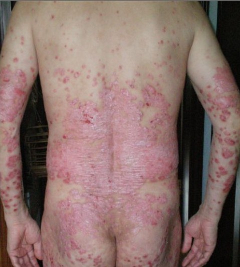 危害二、泛发性脓疱型牛皮癣导致脏器损害:有的寻常型牛皮癣患者会突然发生高热,关节肿痛,全身不适及血细胞增高,皮肤上迅速出现粟粒大小,密集的小脓疱。脓疱连成大片,干涸后于皮下再发新的脓疱,反反复复持续数月不消退,这就是泛发性脓疱型牛皮癣,此病常常并发肝,肾等系统损害,亦可因继发感染、电解质紊乱或衰竭而危及生命。