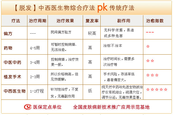 3、新型技术,疗效显著:运用该疗法在临床上治疗12-15天后,患者的脱发现象消失,同时萎缩的毛囊开始恢复,头发开姓再生,1-3个月后,患者的头发将能够完全长出,颜色开始变深,巩固一个疗程后,患者头发的生长将达到正常人水平。
