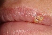 复发性与原发性感染相比,水疱较小,较密集,一般缺乏全身症状,常不累及颊粘膜。在发疹前1-2小时局部有瘙痒或烧灼感,随后在炎性基底上出现群集的水疱,常在7~10天内愈合,不留瘢痕。最常累及面部,特别是口周,其它部位亦可发生。复发一般在同一区域,但并非总是在同一部位。生殖器疱疹复发极为常见,表现为群集的小水疱及浅溃疡形成,病程比原发性感染短。