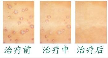 3、轻症诊断治疗:根据临床表现,面部、手足皮肤疣易于诊断,但治疗上常常比较困难,因目前的抗病毒药一般均是针对疱疹病毒而非人类乳头瘤病毒,故对一般的抗病毒药疗效不明显。对于本病祖国医学早有论述,认为是风邪搏于肌肤,风热血燥,气滞血瘀凝集于皮肤而致皮疹。治疗应以辨证施治。我们经过多年的临床治疗、观察,总结出一套独特的中西医结合的综合疗法。例如皮肤疣有血瘀之症,而刺血法有开窍、泄热、活血、消肿等作用,我们采用每周一次耳背静脉放血法,10次为一个疗程,对早期的青年扁平疣疗效尤佳。