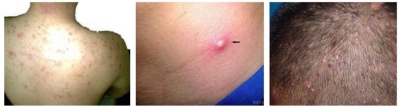 毛囊炎是由金黄色葡萄球菌感染毛囊引起的皮肤炎症,毛囊 炎一旦向深部发展,可引起毛囊周围发炎而患疖病,严重者可有淋巴结肿大、发热、头痛,甚至引起脓毒血症或败血症 。如果挤压位于鼻、口唇部位的疖肿,可使 病菌经血行进入颅内,严重者可导致死亡。故对与毛囊炎应早发现、早治疗。