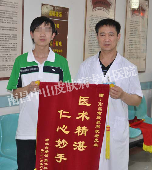 小王是带着锦旗来拜访沈主任的,他说他不大会说好听的话,送锦旗是希望更多的人知道,沈主任是个好医生,中山皮肤病医院是个很棒的医院。