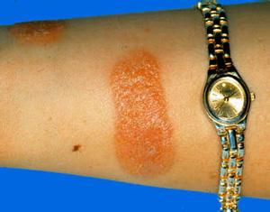 皮炎好发于面部、颈部、手臂、腿部等暴露在外面的皮肤,多数是因为暴晒几小时后就会出现红肿、瘙痒的症状,严重者会出现水疤甚至更严重的大疤。 患部一般有灼热瘙痒的感觉,一般1--2天会渐渐有好转的倾向,并有有脱屑或轻度色素沉着,严重者可有全身不适,发热、恶心,心悸等全身疥状,约1周左右才能恢复。