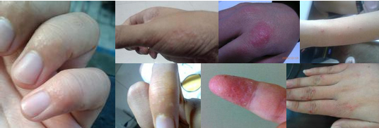 手上起小水疱痒的症状:双手同时长红色水疱,有剧烈瘙痒的感觉。