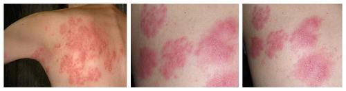 杨 某,男,31岁,最开始是在后背部出现水疱,周边发红,疼痛明显,继而水疱破烂,流浓,结疤,向四周感染,最终连成片。田先生十分着急,遂到附近一家医院 治疗,十天治疗后,疱疹消失。但一周后又在背部、生殖器部位出现,疼痛加剧。后辗转打听到中南昌中山皮肤病医院治疗疱疹效果好,于是入院治疗。经检 查,被确诊为单纯性疱疹,中山皮肤病医院专家采取了"中欧五联基因免疫克毒疗法"经过一段时间的治疗,痊愈出院。