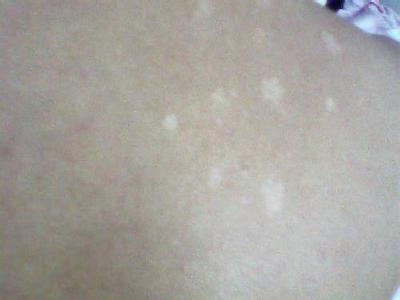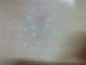表现症状:身上有几块像黄豆大小的白点且不断的扩大。