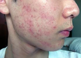 增生性痘印通常是由先天的体质所决定的,在治疗上最为困难,也容易复发。这类疤痕与凹洞形疤痕正好相反,是一种过度肥厚的疤痕,在长过痘痘的地方留下了明显的红色突起,外观又红又肿,而且更严重的是,它会因为搔抓或外力的刺激而慢慢长大。多发生于一些体质特殊的人群身上,这类人群由于其皮肤真皮层的纤维母细胞太过活跃,在伤口愈合的过程中过度反应,结果真皮因发炎受伤后不但不是凹下去,反而是凸起来,变成肥厚的皮肤组织增生。这已经不是护肤品能解决的问题了,必须使用医疗方法。