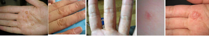 现今已经证实它和汗腺、流汗这些因素都没有关联。其临床表现为深在性小水疱,粟粒至米粒大小,略高出皮肤表面,常无红晕。对称发生于掌跖及指(趾)侧。1-2甘后干涸成屑,并可反复发生,伴不同程度的灼热及瘙痒,常连续发作数年。