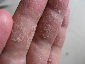 手的皮肤感染了怎么办?南昌中山皮肤病医院网络咨询平台上,河南的刘小姐留言:患手足癣一年,一年前一次洗手时发现手上有几个小暗红点,不疼不痒,当时没太注意,以后小红点开始扩散,出现针尖到针头大小的深在水疱,并且开始发痒。后到当地皮肤病医院检查,当地大夫诊断为足癣,给予药膏治疗,用了之后见效。可是没过几天就又复发了,慢慢的脚上也出现了,生活都没法继续了。到底该怎么办?