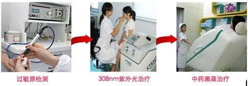 “308nm准分子紫外光治疗系统”,用设备集成了的308nmXeCI准分子激光光源、200Hz的准连续纳米调制、最新的液体光源传输(LLG)等多 项世界顶级技术,诱导T细胞凋亡,并促进新细胞的生成;调节细胞靶因子以及生长素因子,诱导抗炎因子以及免疫按捺因子,促使病菌细胞加速凋亡。