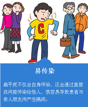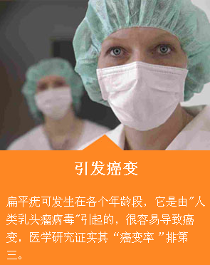 扁平疣的致病因素是病毒,而该病毒可通过直接接触传染,也可通过污染物,如针、刷子、毛巾等间接传染。这就让扁平疣有了大面积发作和传染他人的危险。所以,我们在治疗时一定要治去根祛去症。专家提醒:扁平疣治疗不及时可诱发癌变!是目前癌变率排名全国第三的皮肤病.